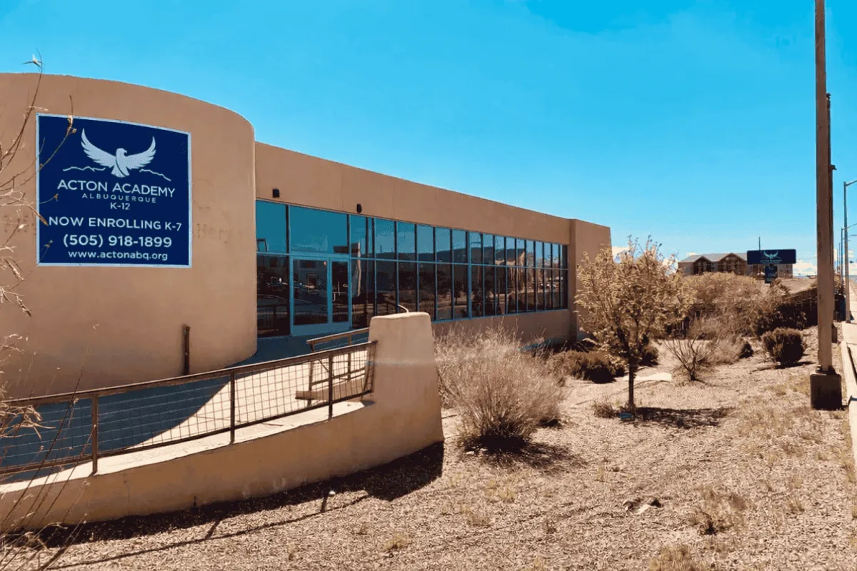 Acton Academy ABQ is located at 3100 Menaul Blvd NE near the corner of Menaul and Carlisle